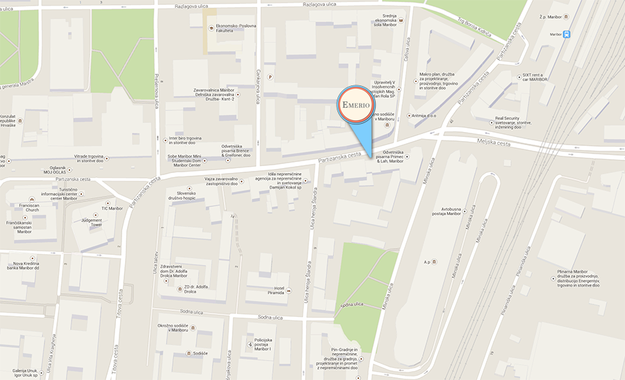 Računovodski servis Emerio d.o.o. se nahaja na Partizanski cesti 32 v Mariboru. Parkiranje je možno na dvorišču poslovne stavbe.